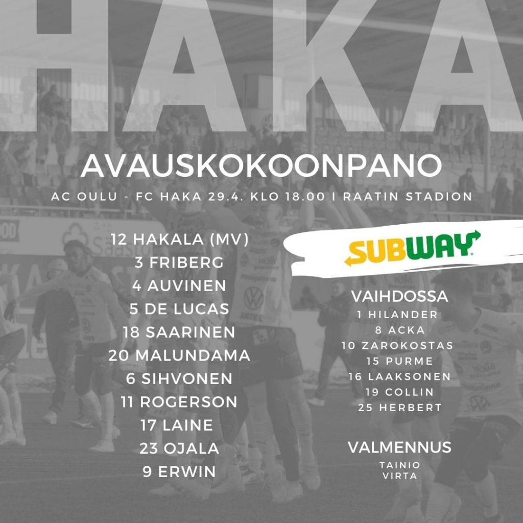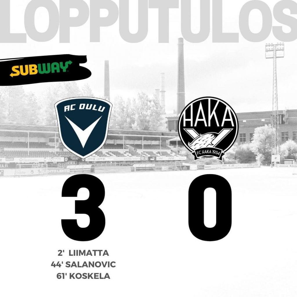 FC Haka päätti Veikkausliigan avauskuukauden vieraissa, kun se kohtasi AC Oulun Raatin stadionilla. Hurjassa vireessä ollut koskilaisjoukkue joutui kuitenkin nöyrtymään, kun kotijoukkue nappasi kauden avausvoittonsa Raatin luonnonnurmella.