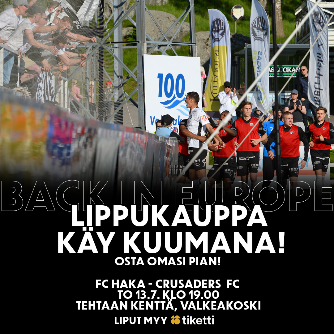 Jo ensi viikolla koittaa FC Hakan ensimmäinen europeli 15 vuoteen – tämä odotus on näkynyt myös ottelun ennakkolipunmyynnissä, joka käy erittäin kuumana! Noin 700 pääsylippua on jo lunastettu FC Hakan ja pohjoisirlantilaisen Crusaders FC:n väliseen koitokseen torstaina 13.7.