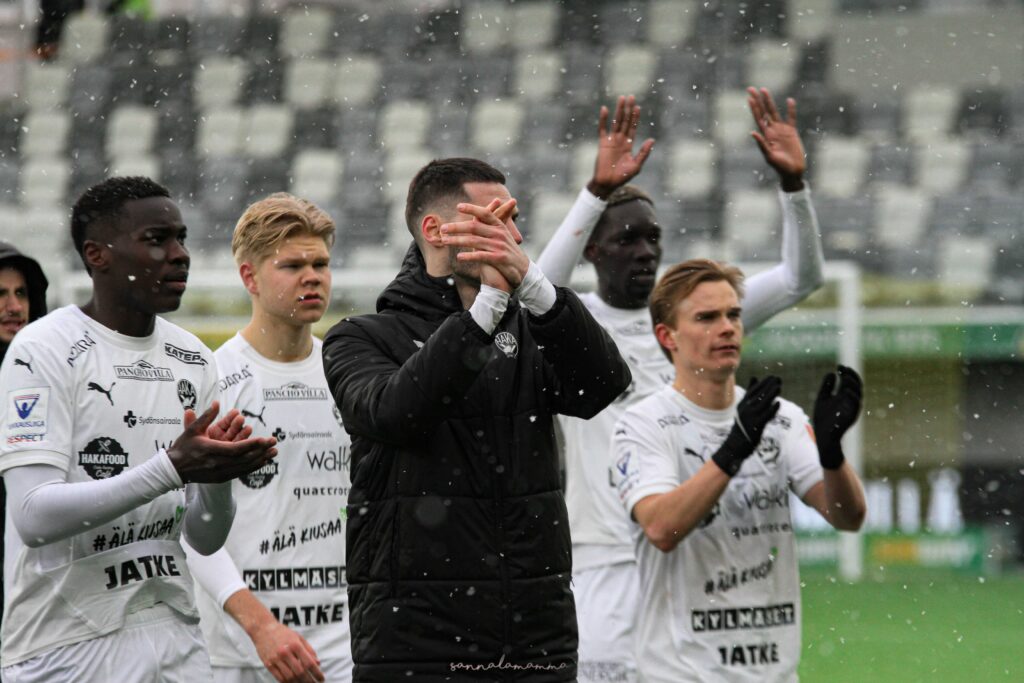 Ottelun ensimmäinen jakso oli Hakalta varmaa, oman pään kautta pelaamista ja prässipelaaminenkin oli hivenen passiivista. Pääasiassa vastahyökkäyksillä iskeneen koskilaisjoukkueen taktiikka kuitenkin puri ja ensimmäinen huippupaikka avausmaaliin syntyi 23. minuutilla, kun Marko Bacanin pääsi muutamasta metristä yrittämään maalintekoa Elias Mastokankaan loistotarjoilusta. Hyökkääjän laukaus osui kuitenkin suoraan päin maalivahti Joshua Oluwayemia ja näin lukemat pysyivät vielä maalittomina.