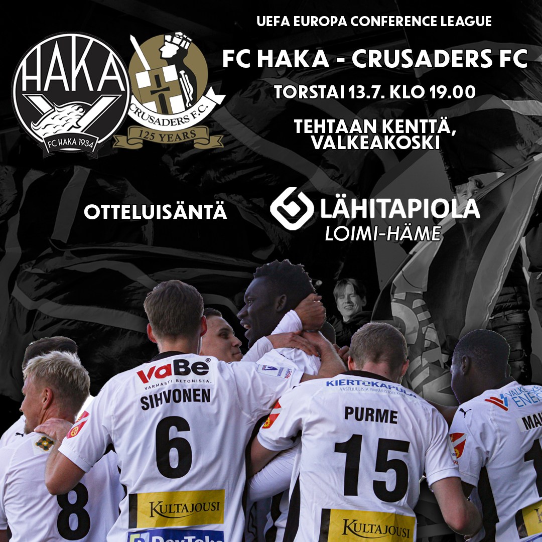 FC Haka kohtaa Konferenssiliigan ensimmäisellä karsintakierroksella pohjoisirlantilaisen Crusaders FC:n. Ensimmäinen osaottelu Tehtaan kentällä käynnistyy torstaina kello 19.00.