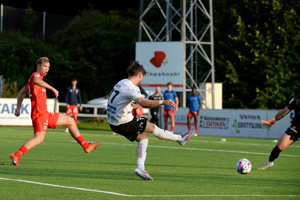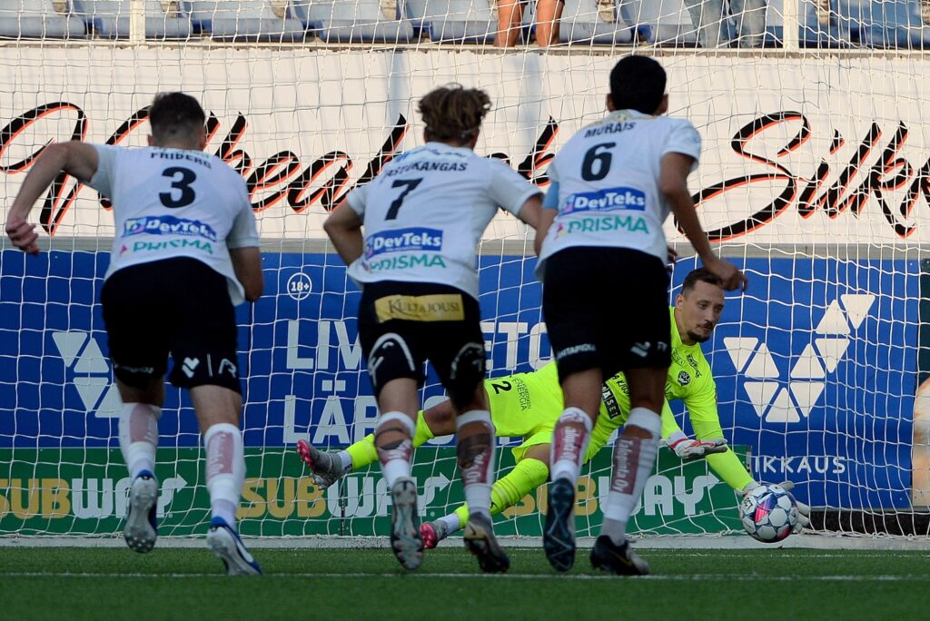 Seuraavaa maalia ei tarvinnut odottaa kuin viitisen minuuttia ja siitäkin vastasi vierailija FC Inter. Jussi Niska ajoi vahvasti kohti maalia ja Guilherme Morais epäonnisesti taklasi sääntöjenvastaisesti nurin yrittäessään tökätä jalasta selkeästi irrallaan olleen pelivälineen pois miehen ulottuvilta. Erotuomari Joni Hyytiä vihelsi pallon välittömästi pilkulle ilman VAR -tarkistuksia ja pallon taakse astellut Darren Smith laukoi pallon oikein aavistaneen Lepolan alta voimalla maaliin.