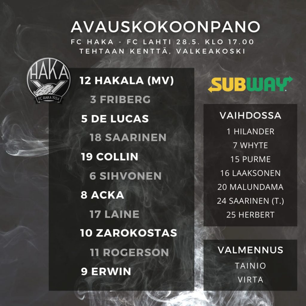 Lahti oli pakotettu tekemään myös toisen vaihdon heti jakson alkupuoliskolla, kun Haka -taustainen Juho Pirttijoki törmäsi yhteen Donaldo Ackan kanssa sillä seurauksella, että Pirttijoki joutui jättämään kentän loukkaannuttuaan ottelun 53. minuutilla.