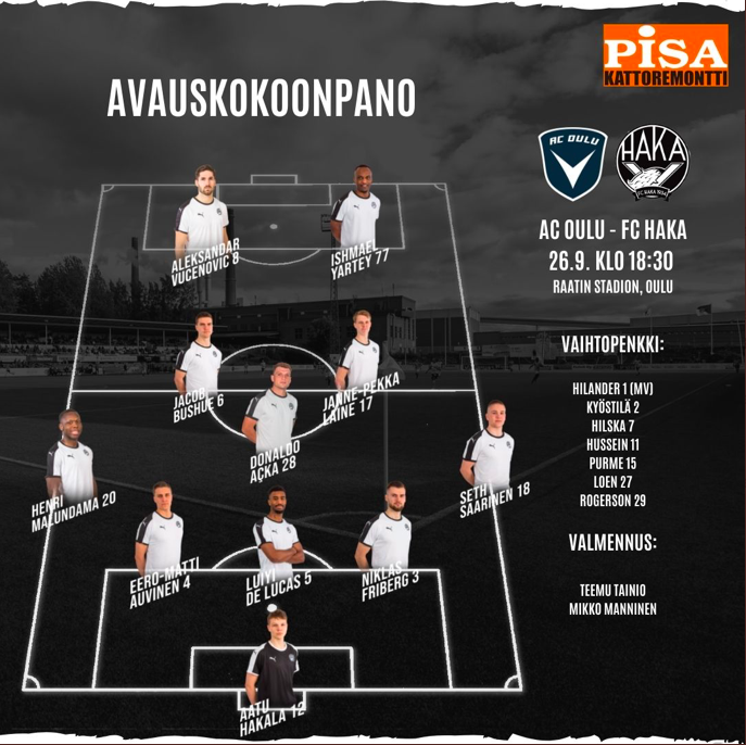 FC Haka matkusti sunnuntaina Veikkausliigan päätöskierroksella AC Oulun vieraaksi. Äärimmäisen tärkeä ottelu päättyi koskilaisittain riemukkaisissa merkeissä, kun edellisen kohtaamisen kalavelat tuli maksettua identtisesti 0-1.