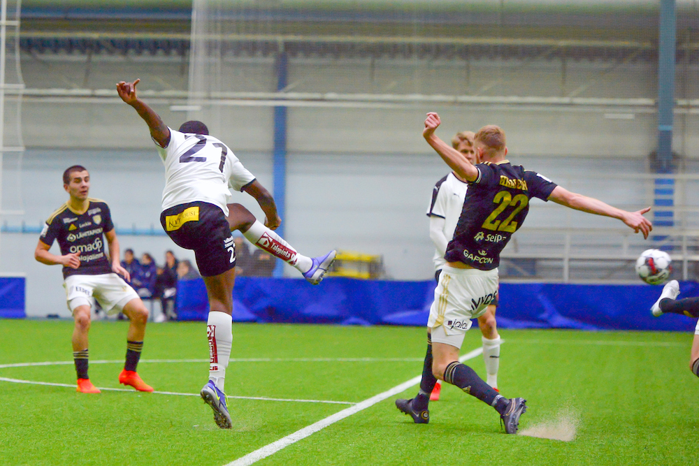 Toisen jakson alkuun valkopaitojen Oiva Laaksosella oli mahdollisuus iskeä kauden toinen maalinsa, kun mies katkoi kauas maalilta tulleen Ovie Ejeherin syötön ja yritti roikottaa pallon tyhjää maaliin. Yritys meni kuitenkin puolisen metriä ohi vasemman tolpan.