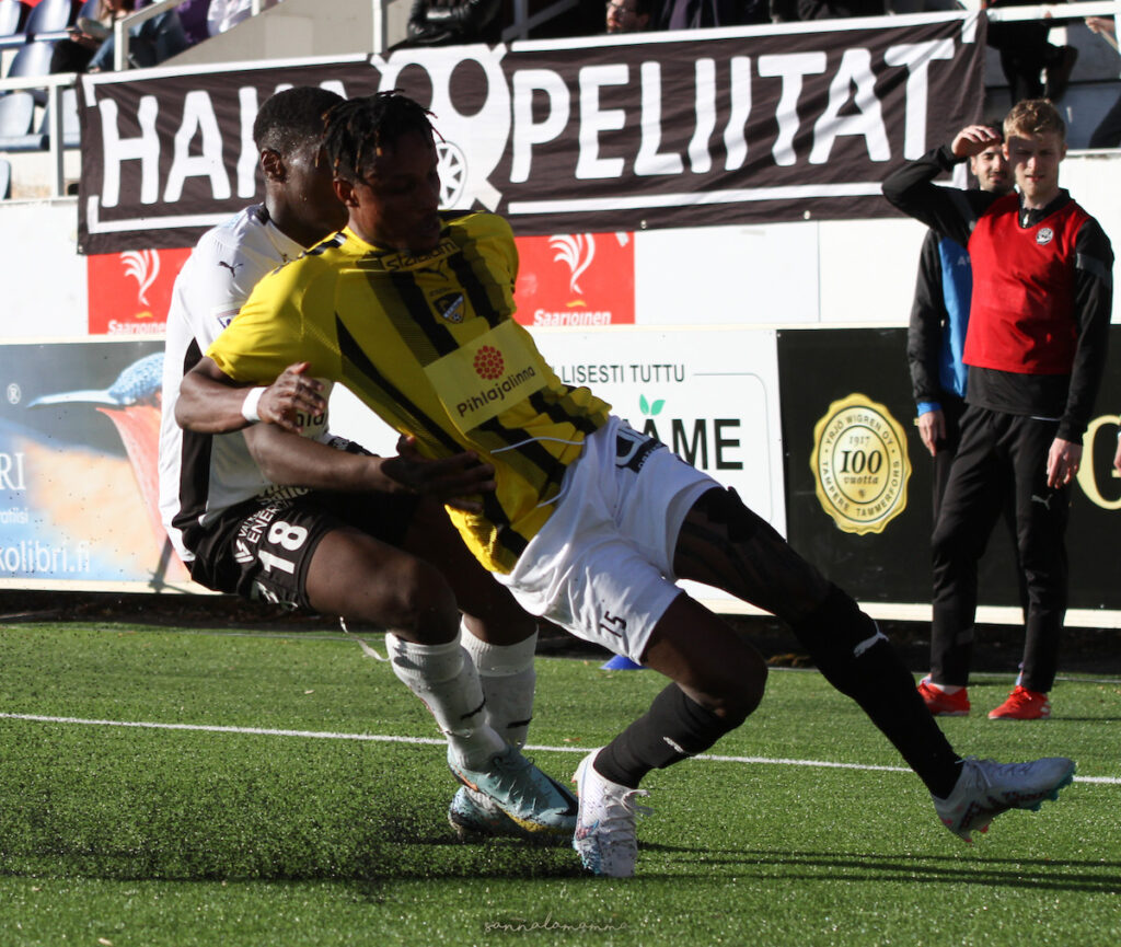 Pitkään näytti, että koskilaiset olivat matkalla täyteen pistepottiin, mutta toisin kävi. Ottelun puhuttavin hetki nähtiin juuri, kun 90 minuuttia oli täyttymässä. Pallo oli jo ajautunut Hakan rangaistusalueen ulkopuolelle, lähelle sivurajaa, mutta sisällä alueella tapahtui. Fallou Ndiaye ja Hongan Ville Koski nahistelivat keskenään ja tilanne päätyi siihen, että Koski makasi maassa huuli vertavuotavana.