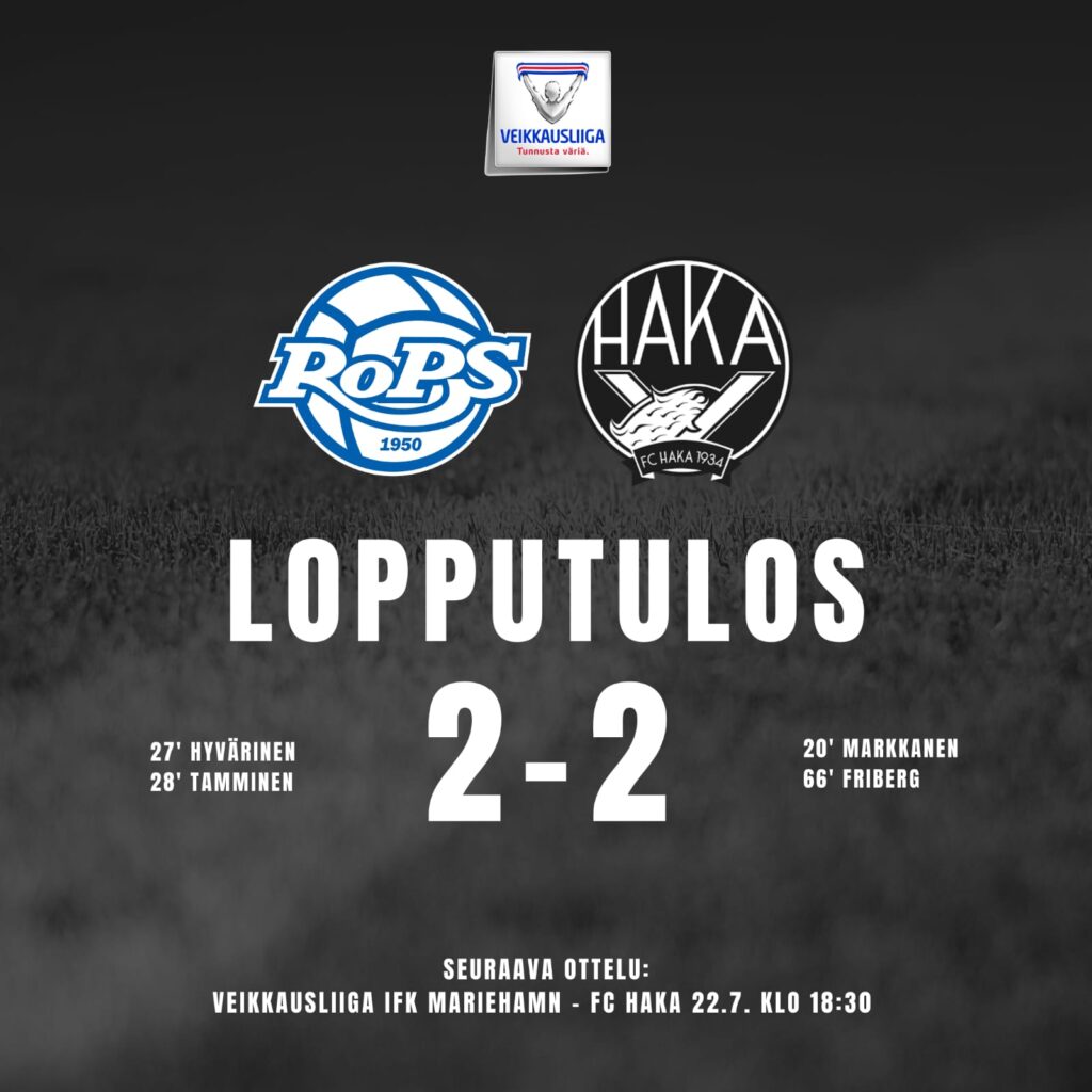 FC Haka matkusti Veikkausliigan kolmannella kierroksella Rovaniemen Palloseuran vieraaksi perjantai -illan otteluun, missä pisteet lopulta tasattiin kaksijakoisen kamppailun päätteeksi maalein 2-2.