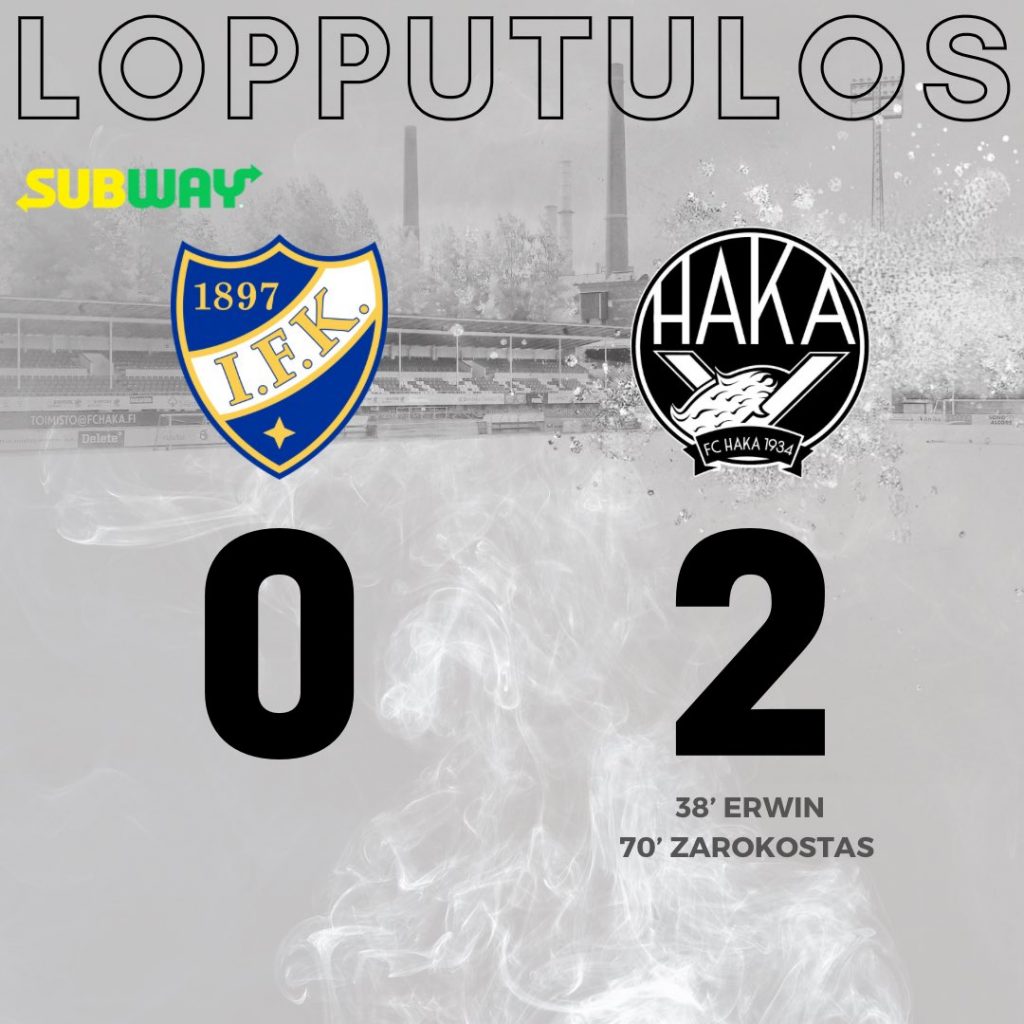 FC Haka matkusti lauantaina Helsingin Bolt Arenalle Helsingin IFK:n vieraaksi. Sarjajumbona tukevasti olleen helsinkiläisseuran ahdinko paisui entisestään, kun valkopaidat hakivat rutiinivoiton 0-2 -lukemin.