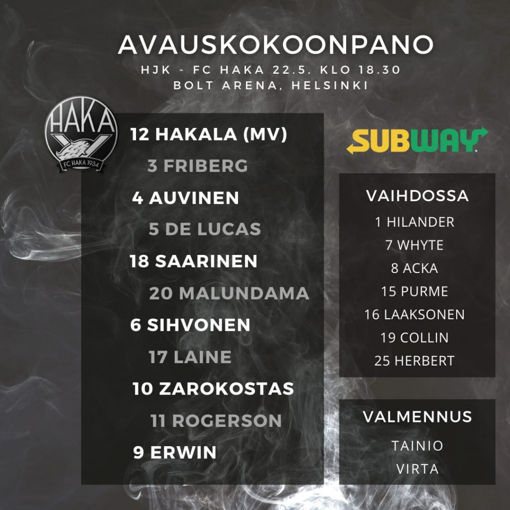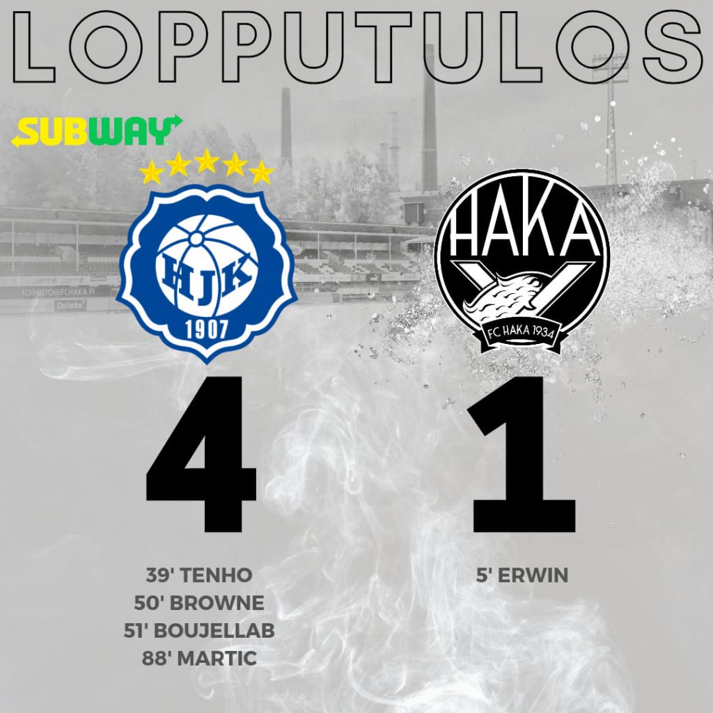 FC Haka matkusti sunnuntaina Helsingin Jalkapalloklubin vieraaksi Veikkausliigan klassikko-otteluun Bolt Arenalle Helsinkiin. Hyvästä startista huolimatta kotijoukkue oli lopulta odotetun vahva ja nappasi pisteet selvin 4-1 -lukemin.