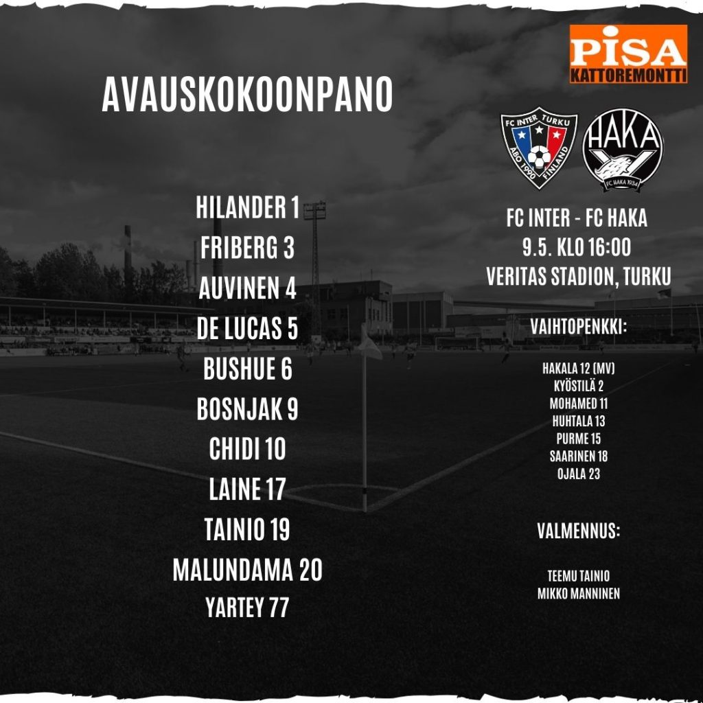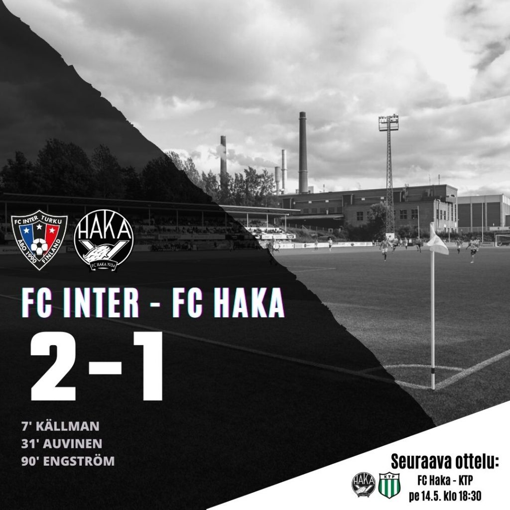 FC Haka teki FC Interin vieraana pitkän päivätyön ja oli tasaväkisessä ottelussa pisteessä kiinni aivan ottelun viimeiselle minuutille asti. Turkulaisten viimeinen hyökkäys tuotti kuitenkin tulosta ja näin pisteet jäivät hienon esityksen jälkeen Turkuun maalein 2-1.