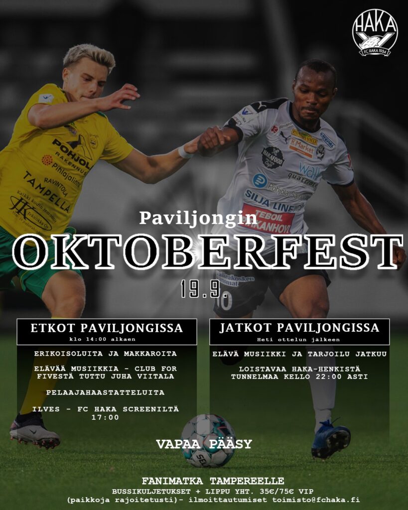 Seuraavan kerran Hakalla on mahdollisuus voittoon lauantaina, kun se matkustaa Pirkanmaan derbyssä Ilveksen vieraaksi. FC Haka järjestää Paviljongissa Oktoberfestin, jossa peliä voi seurata screeniltä. Etkot alkavat kello 14.00 ja jatkot heti pelin päätyttyä.