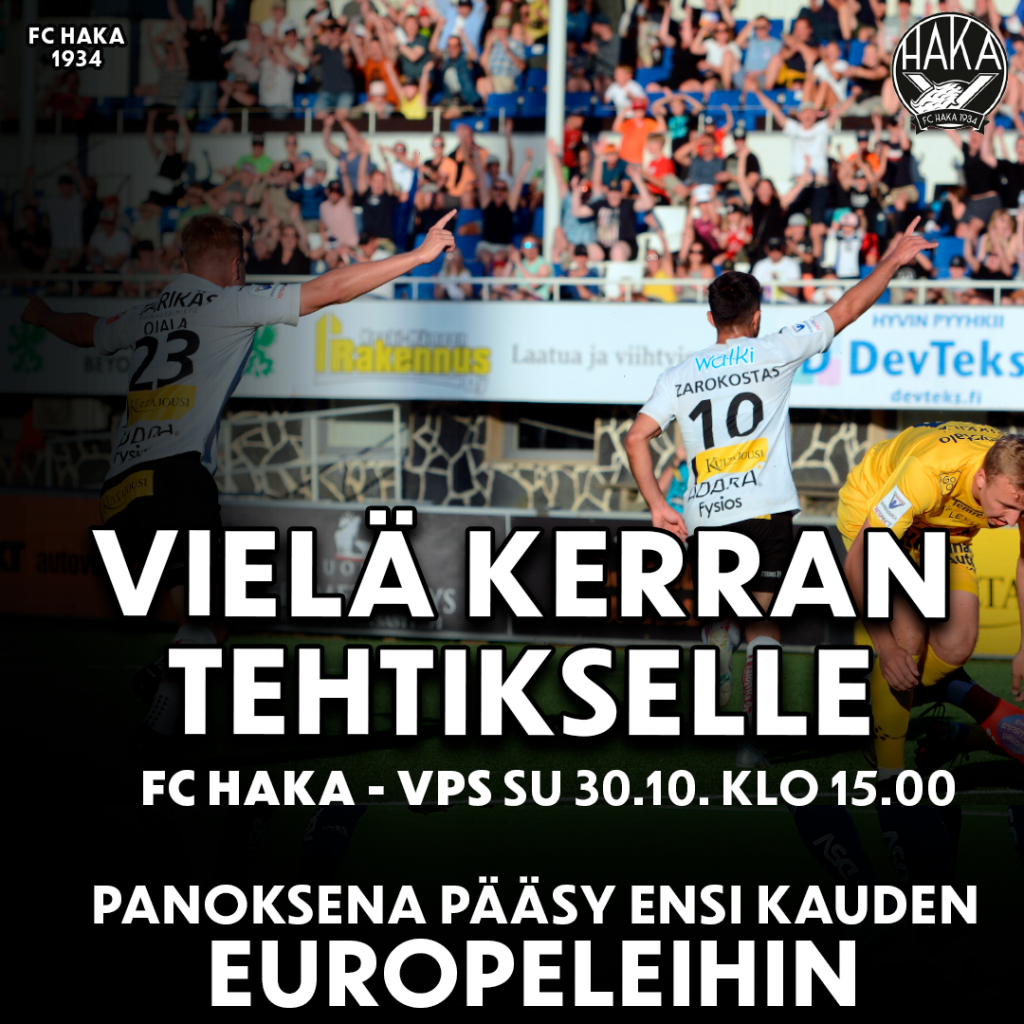 Haka ja Multasen VPS ratkaisevat europelipaikan sunnuntaina Tehtaan kentällä.