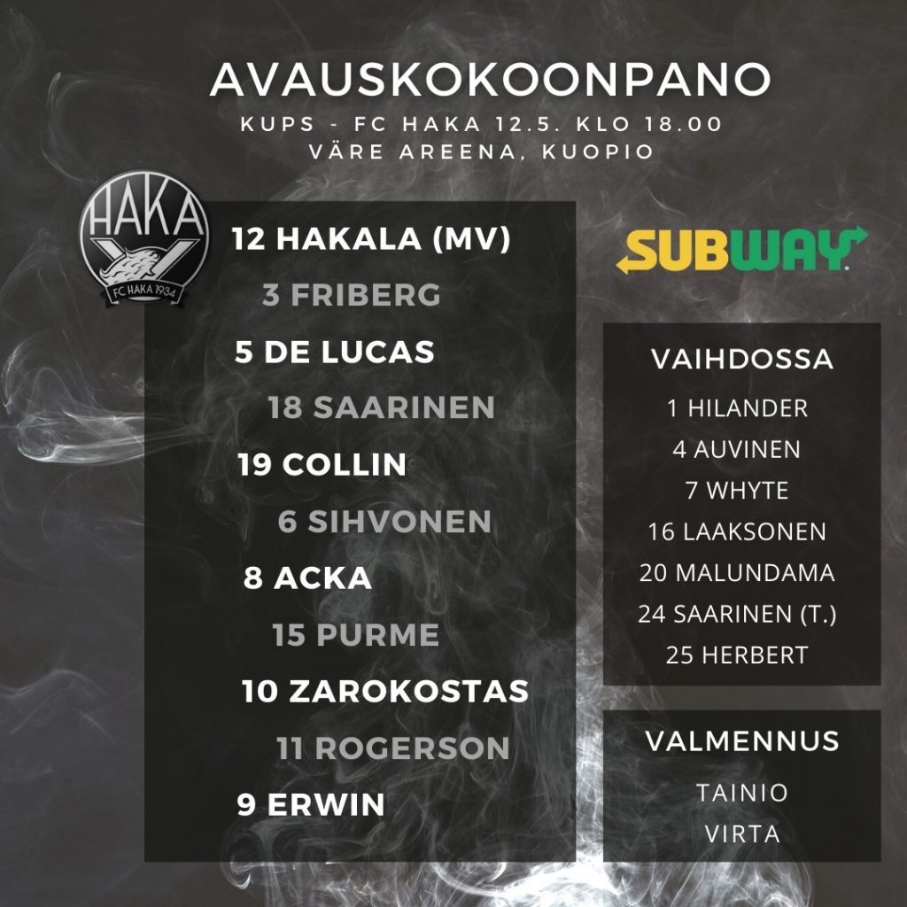 Ottelun avausmaalista vastasi Tim Väyrynen 28. minuutilla. Pohjustuksen osumaan teki käsittämättömän helposti omalta alueelta pallon kanssa nousemaan päässyt Diogo Thomas. Hakassakin pelannut toppari toi palloa puoleen kenttään, käytti sen laidalla ja jatkoi juoksuaan kohti päätyä, mistä pallon saatuaan syötti sen maalin etunurkalle nousseelle Väyryselle. Jos Thomas pääsi vapaasti nousemaan, niin samoin Väyrynen tuli Haka -toppareiden välistä palloon ja ohjasi sen ”takavasaralla” etukulmasta sisään.
