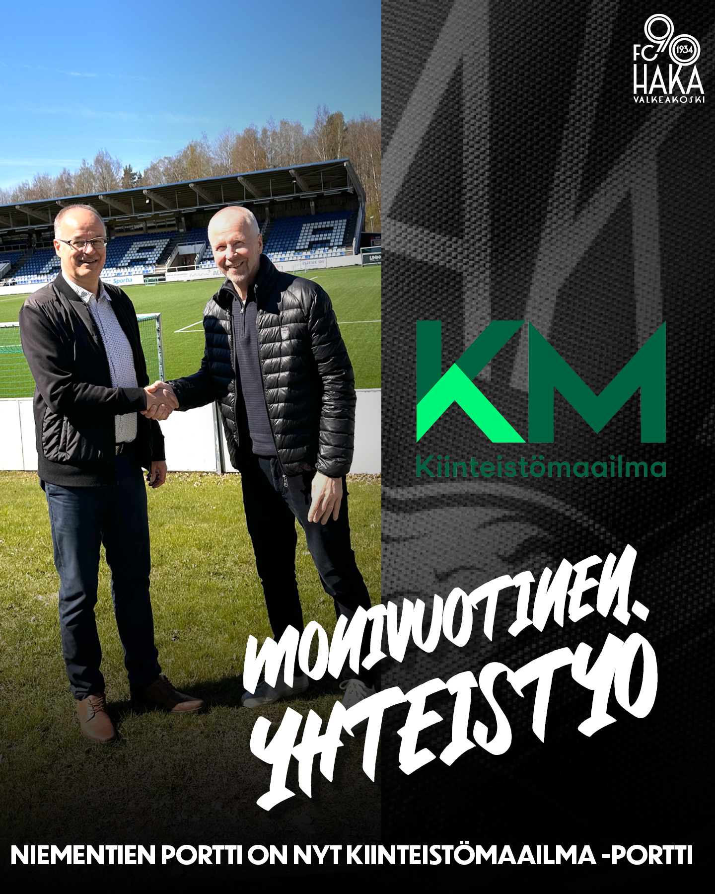 FC Haka ja Kiinteistömaailma Valkeakoski ovat tehneet monivuotisen yhteistyösopimuksen. Näkyvänä osana yhteistyötä Niementien portti on jatkossa Kiinteistömaailma -portti.