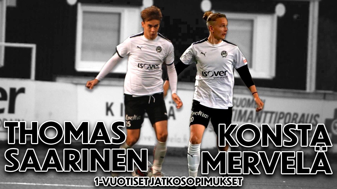 FC Haka on kiinnittänyt kaksi tulevaisuuden nimeä, kun Konsta Mervelä ja Thomas Saarinen allekirjoittivat vuoden jatkosopimukset seuran kanssa. Mervelän kohdalla kyseessä on jo edellisessä sopimuksen olleen option käyttö ja Saariselle puolestaan kirjattiin uusi sopimus.