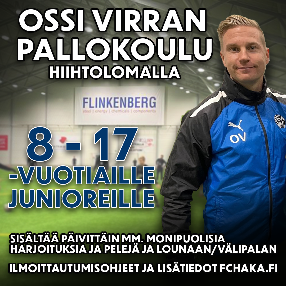 FC Haka järjestää hiihtolomaviikolla jalkapalloleirin Flinkenberg Areenassa (Valkeakosken palloiluhallissa). Jalkapallokoulun vetäjänä toimii FC Hakan Veikkausliigajoukkueen valmentaja Ossi Virta (UEFA Pro).  Tervetuloa mukaan nauttimaan hyvästä ilmapiiristä ja laadukkaista harjoituksista huippuolosuhteissa!