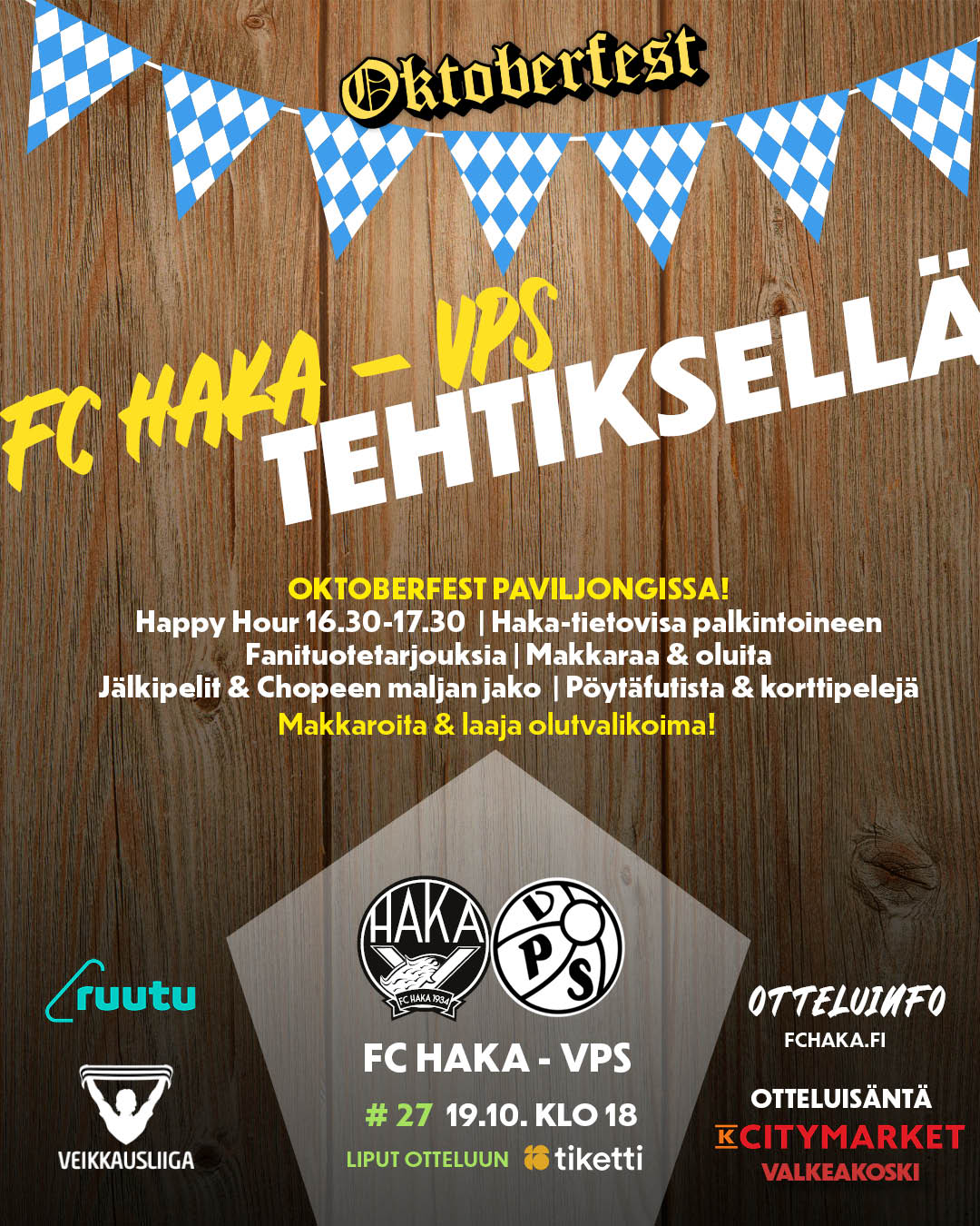 Otteluinfo: FC Haka – VPS ja Oktoberfest-tunnelmaa lauantaina Tehtiksellä!