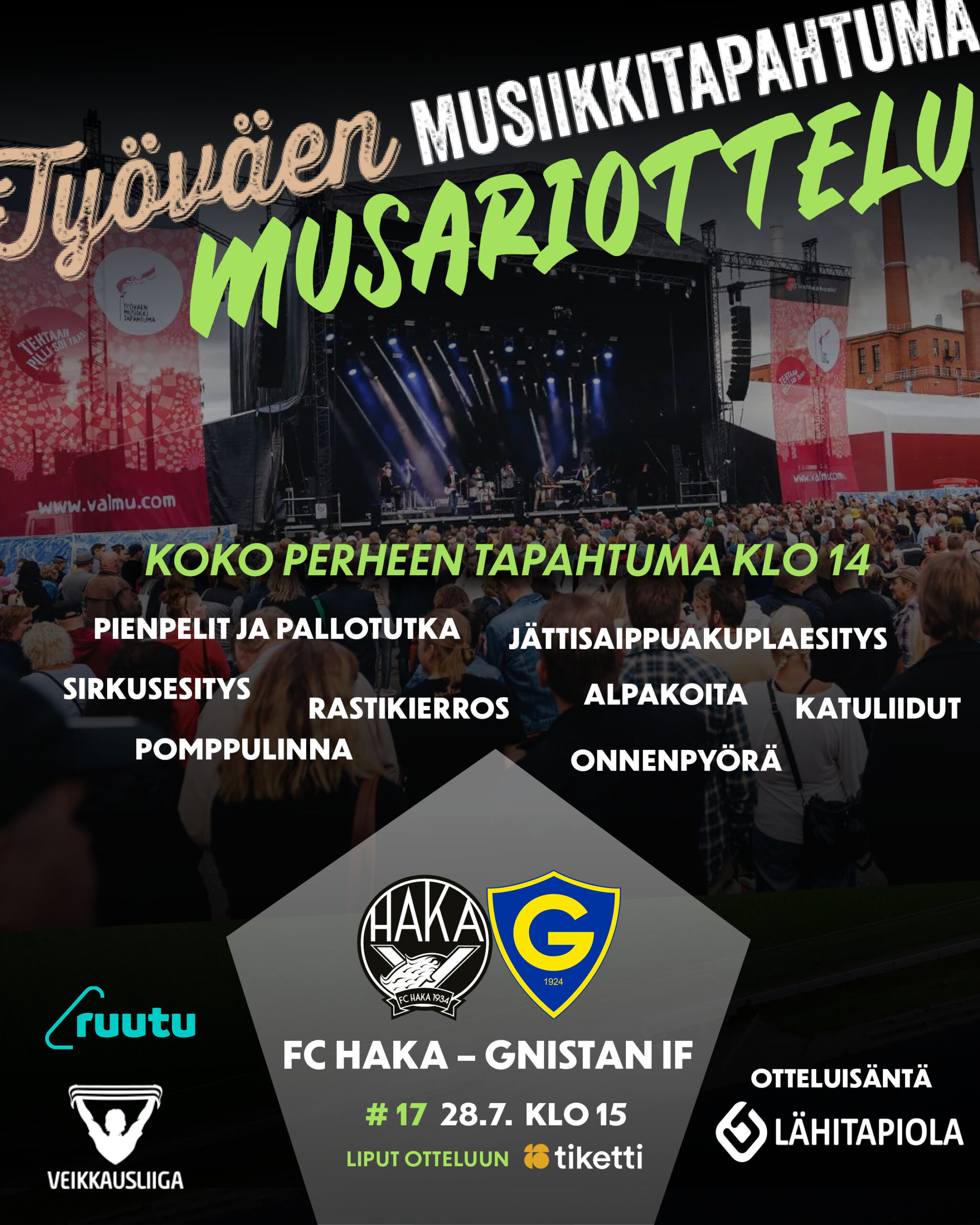 FC Haka – Gnistan su 28.7. klo 15.00. Osta liput täältä!