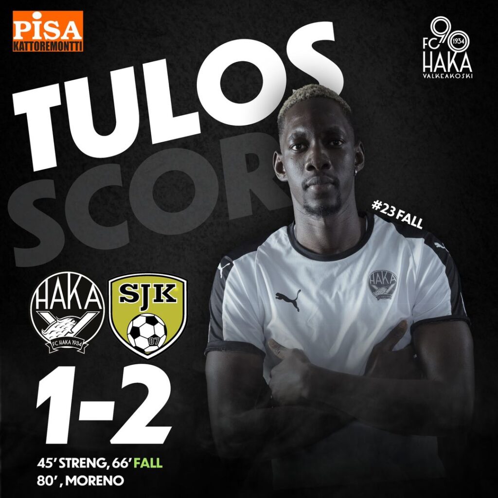 Palkinto tuli kuitenkin neljä minuuttia myöhemmin. Haymenn Bah-Traore ajoi vahvasti oikealta sisään boksiin ja ujutti pallon maalin etunurkalle, mistä Maissa Fall ohjasi pallon juonikkaasti kantapäällään sisään. Myös tätä osumaa tarkasteltiin VARin avulla, mutta niinikään tuomio pysyi lainvoimaisena ja näin Haka oli jälleen pelissä mukana.