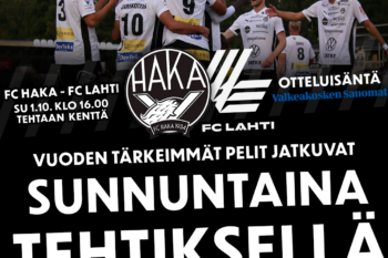 Tänä vuonna olemme viettäneet Valkeakosken kaupungin 100-vuotisjuhlia. FC Haka oli mukana suuressa juhlavuodessa erityisesti järjestämällä Valkeakoski100 -juhlaottelun 7.6. FC Haka-Ilves....
