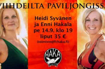Lue lisääFC Haka järjestää syksyn alkuun musiikki-illan Tehtaan kentän ravintola Paviljongissa. Tunnelmallisessa paikassa musiikista vastaavat Enni Hakala ja Heidi Syvänen ja tarjoilusta huolehtii...