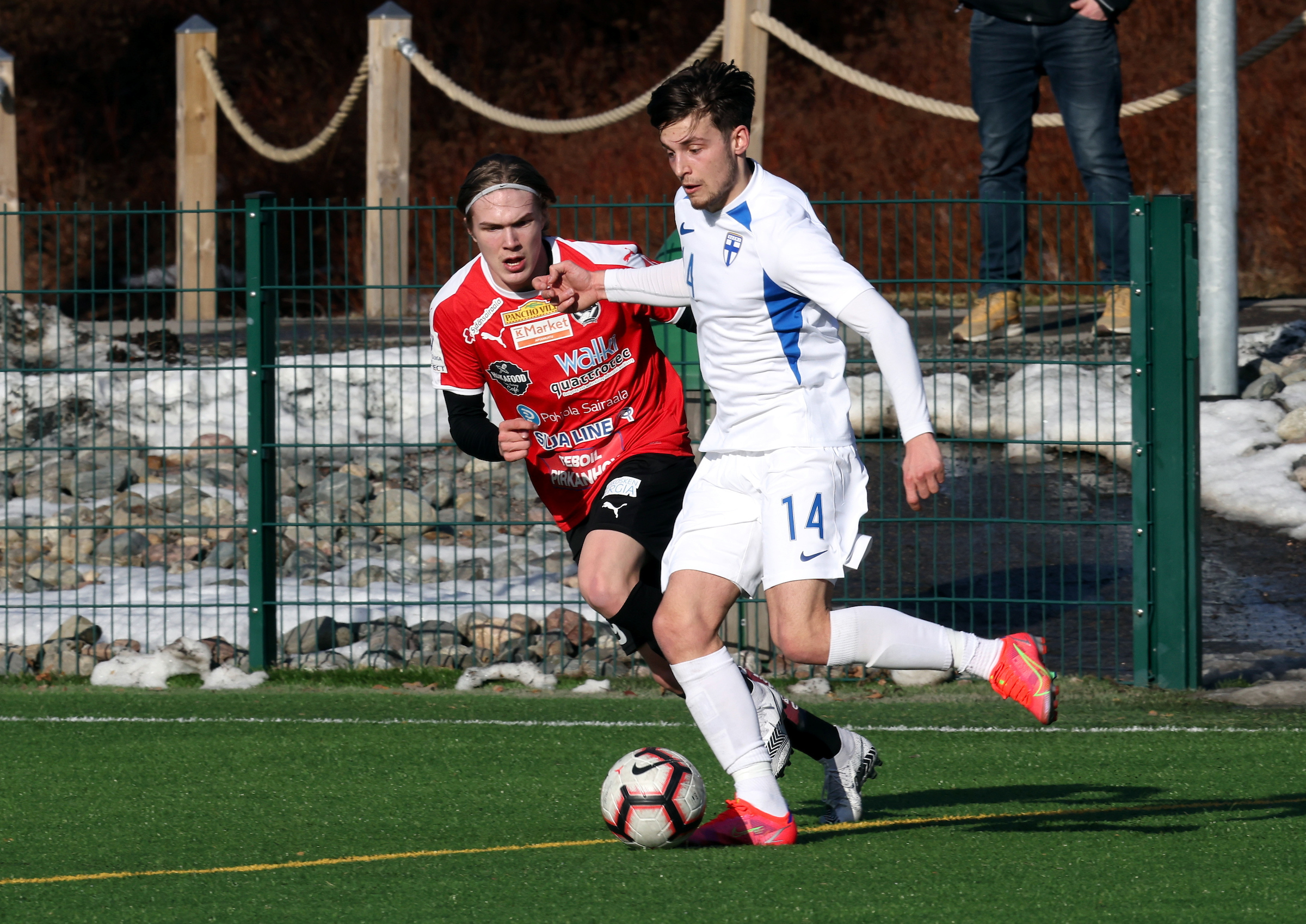 Hakassa Tainio on totuttu näkemään keskikentällä, mutta Pikkuhuuhkajissa päävalmentaja Juha Malinen istutti hänet laitapuolustajan paikalle.