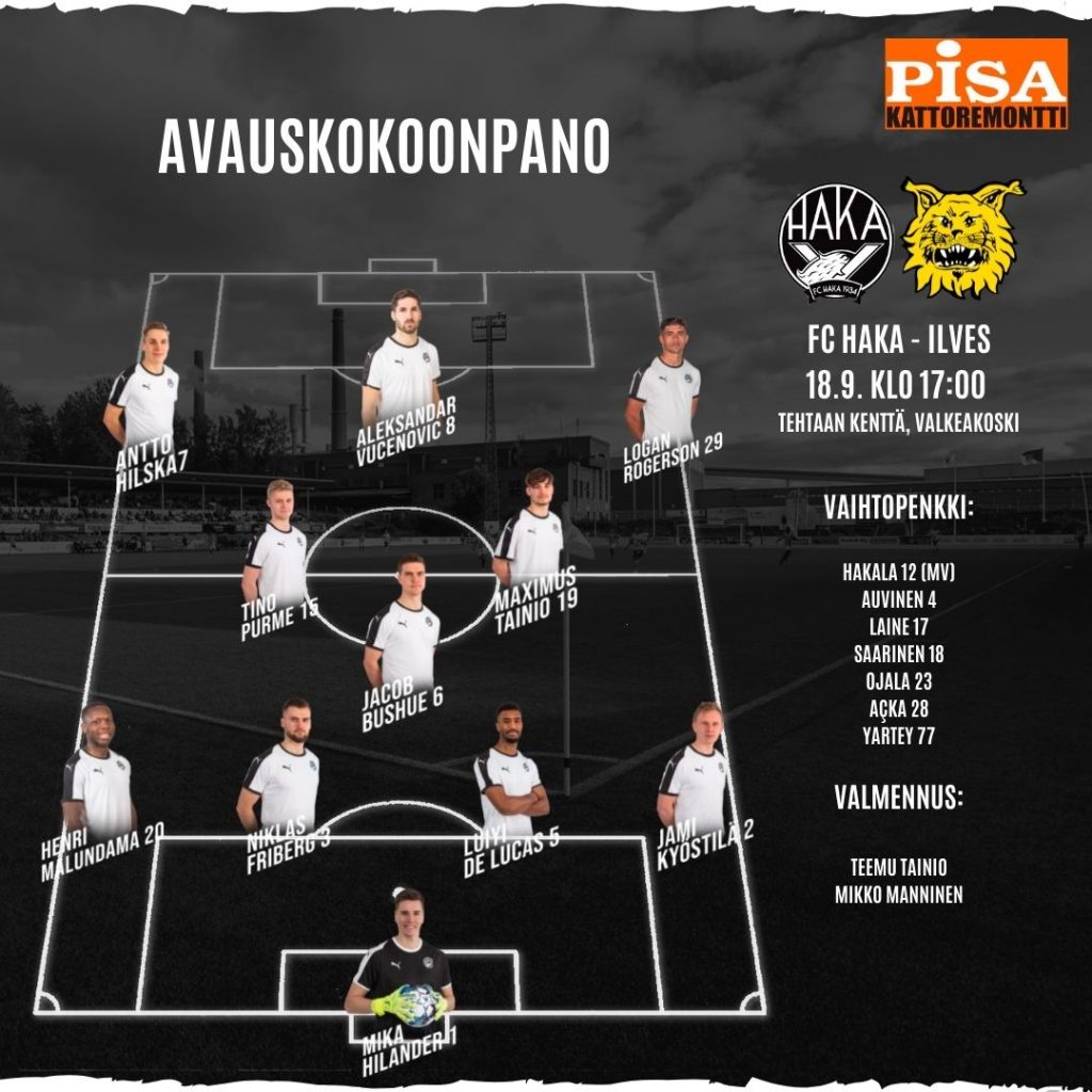 Haka reagoi tilanteeseen vaihtamalla ulos Tino Purmeen ja Antto Hilskan. Tilalle tuli Janne-Pekka Laine ja Ishmael Yartey. Tästä hetken päästä myös pitkien pallojen kohde Alexandar Vucenovic vaihdettiin Salomo Ojalaan.
