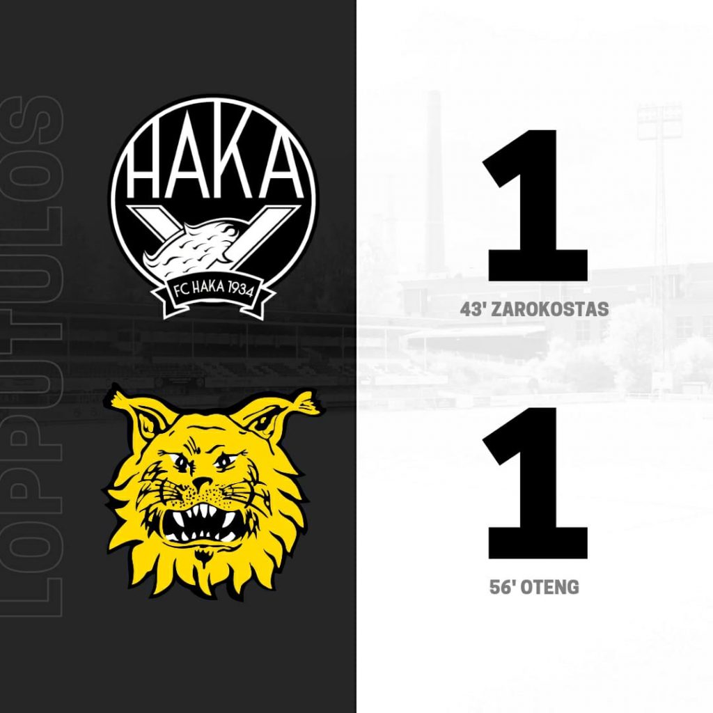 Ilveksen tasoitus syntyi toisen jakson alussa, kun keltapaidat pääsivät katkaisemaan Fribergin pystysyötön. Pallo pelattiin nopeilla lyhytsyötöillä vasemmalta kovana maalin eteen, mistä Eric Oteng pääsi 49. minuutilla tuikkaamaan pallon ohi Haka -maalissa pelanneen Mika Hilanderin.