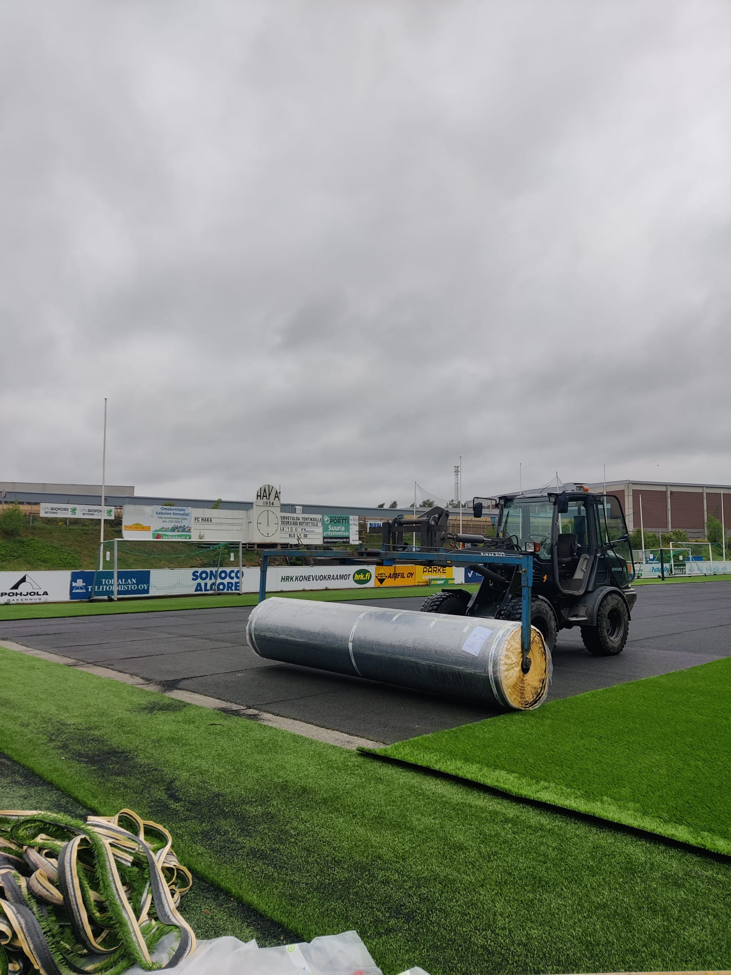 – Joukkue jäi pienelle, ansaitulle lomalle tiukan toukokuun jälkeen. Maanantaina tänne Tehtaan kentälle tuli sitten eri miehet kentän kimppuun. Nyt Tehtaan kentän vanha pinta on kuorittu pois ja muutaman päivän aikana saatu uutta pintaa.