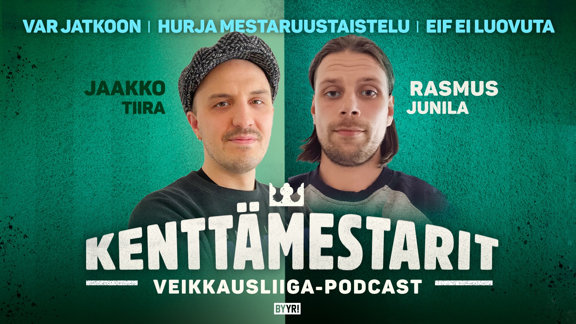 ”Tästä syystä HJK:n kompurointi yllättää. VAR osoitti arvonsa cupfinaalissa. Saadaanko sittenkin putoamistaisto?” Tällä viikolla Kenttämestareissa lauteilla Jaakko Tiira ja Rasmus Junila. Katso ja kuuntele uusin jakso!