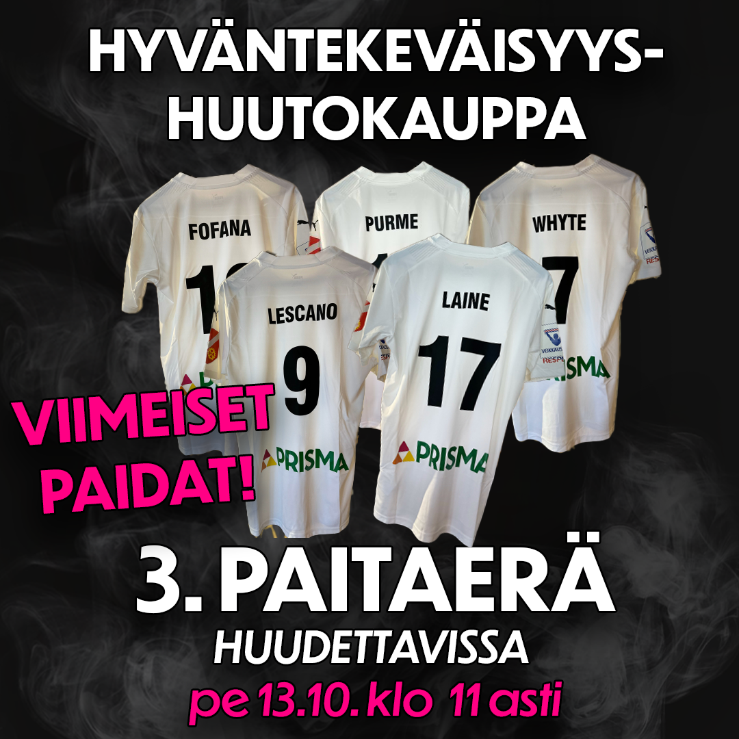 Huutokaupattavien Game Worn- tai Game Issued-juhlapelipaitojen tuotot ohjataan Jussi Peltonen-rahastolle, joka tukee vähävaraisten perheiden lasten ja nuorten jalkapalloharrastusta. Tule mukaan tekemään hyvää!