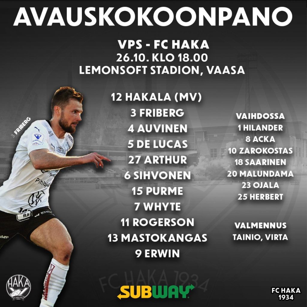 FC Haka matkusti keskiviikkoillaksi Vaasan Palloseuran vieraaksi Eurokarsintasarjan kaksiosaisen finaalin ensimmäiseen osaotteluun. Tasaiseksi odotettu ottelu oli kaikkea muuta, sillä sinisissä paidoissa esiintynyt koskilaisnippu jätti kotijoukkueen heti avausjaksolla telineisiin ja nappasi ratkaisevaan toiseen osaotteluun loistavat lähtökohdat 0-3 -tuloksella.
