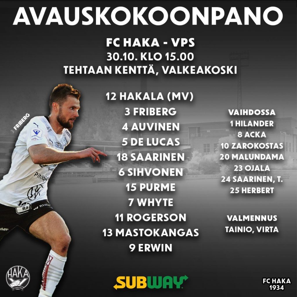 FC Haka ja Vaasan Palloseura kohtaisivat sunnuntai -iltana Veikkausliigan kauden viimeisessä ottelussa, missä ratkaistiin ensi vuoden UEFAn Konferenssiliigan karsintoihin pääsevä joukkue. Haka lähti kaksiosaisen finaalin ratkaisevaan otteluun 3-0 -johdossa ja sunnuntain ottelun päättyessa 1-2 tarkoitti se FC Hakan pääsyä Europeleihin.