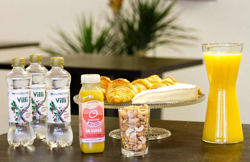 - Esimerkiksi erikoiskahvi / -tee, raikas smoothie, täytetty kauraleipä tai brie-croissant, cashew-pähkinöitä ja hedelmiä.